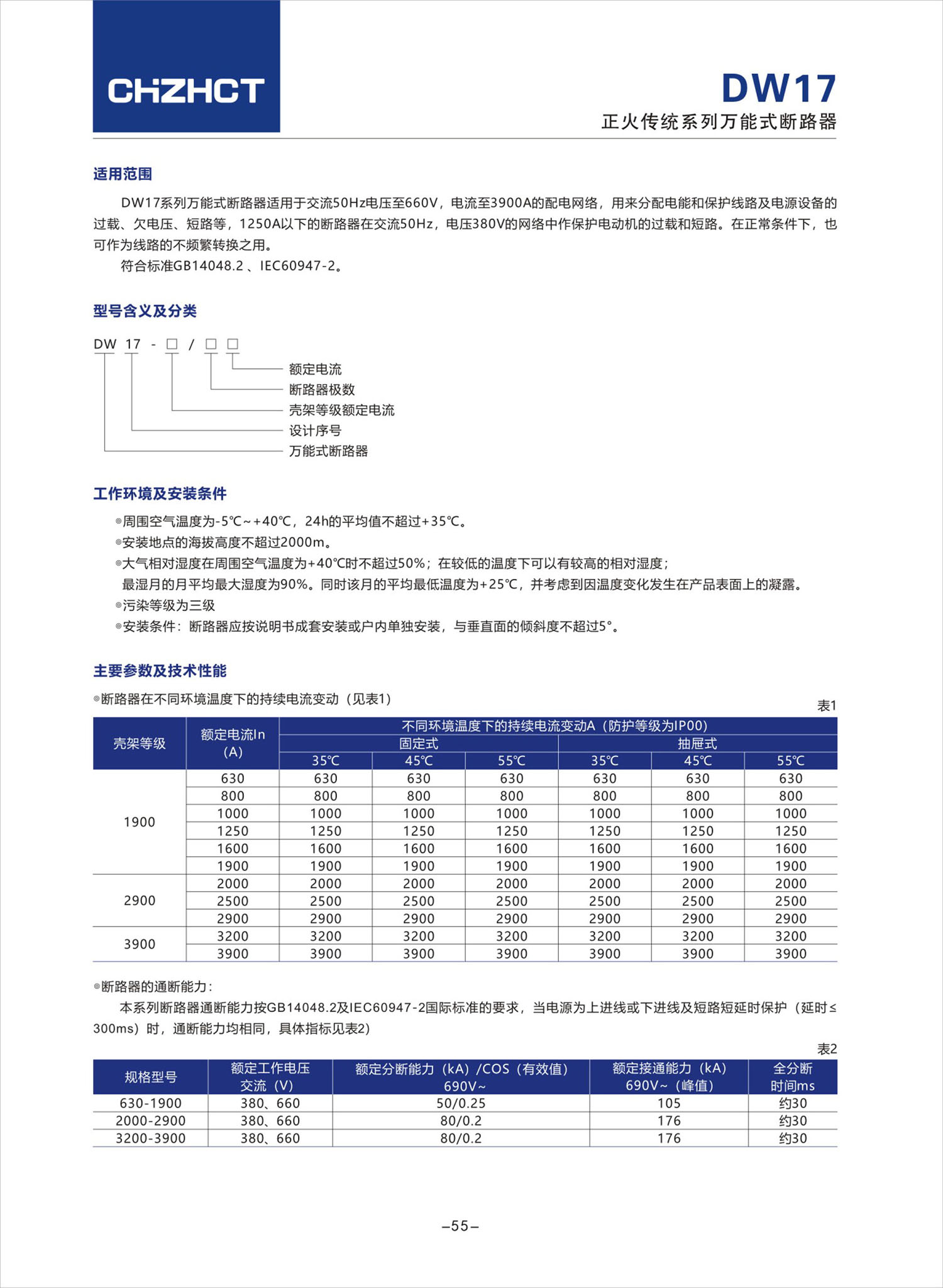 DW17 系列万能式断路器产品说明书