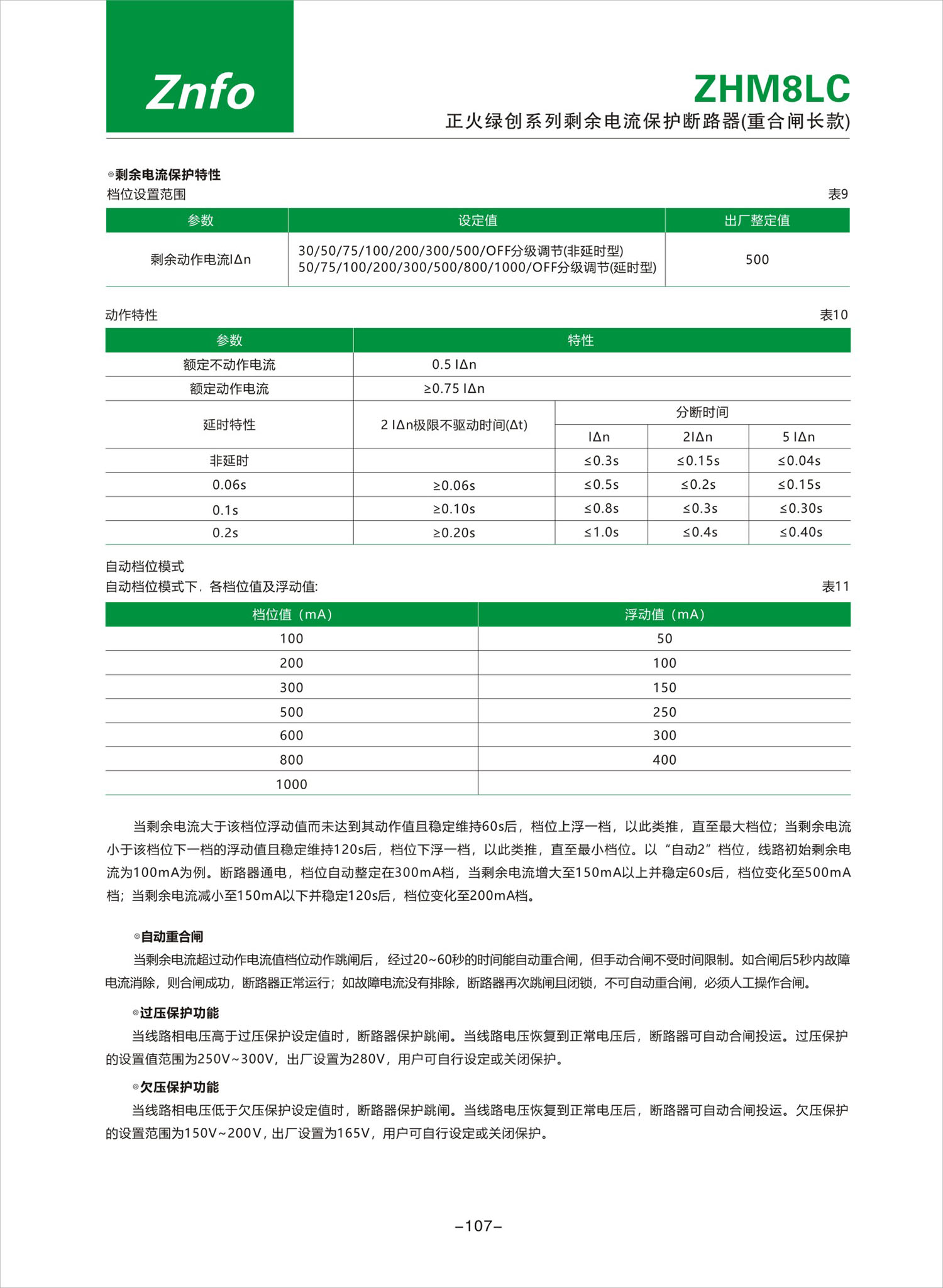 ZHM8LC系列剩余电流保护断路器(重合闸长款)产品说明书